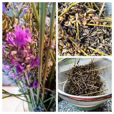 Abbiamo messo in infusione nell'alcool alimentare a 60° i semi di lavanda dello scorso anno ed i fiori nuovi. Per ottenere un alcool a 60° partendo da quello a 96° la proporzione casalinga, veloce, approssimativa è 2:1 cioè due parti di alcool e 1 di acqua distillata.