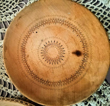 Recuperato in soffitta un vecchio piatto di legno pirografato..che farne? abbiamo pensato di utilizzarlo nel nostro progetto.